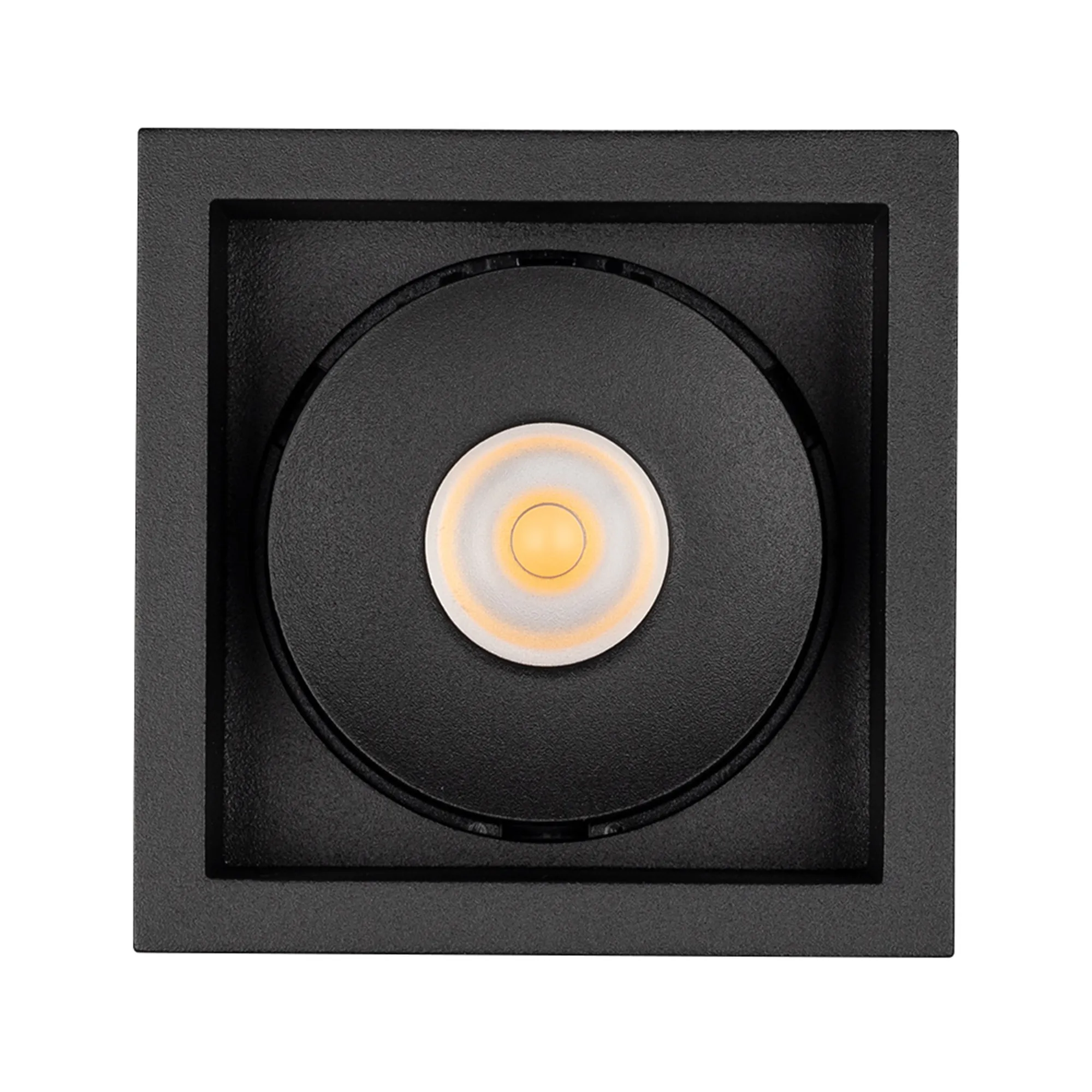 Встраиваемый поворотный светильник для потолка. Мощность 9W, цвет ДНЕВНОЙ 4000K, св.поток 630лм, угол 45°, RA>90. Корпус квадратный черный. Питание AC230V. Размеры LxWxH 80x80x90мм. Установка в отверстие 70x70мм. Драйвер в комплекте (30-45V, 220mA).