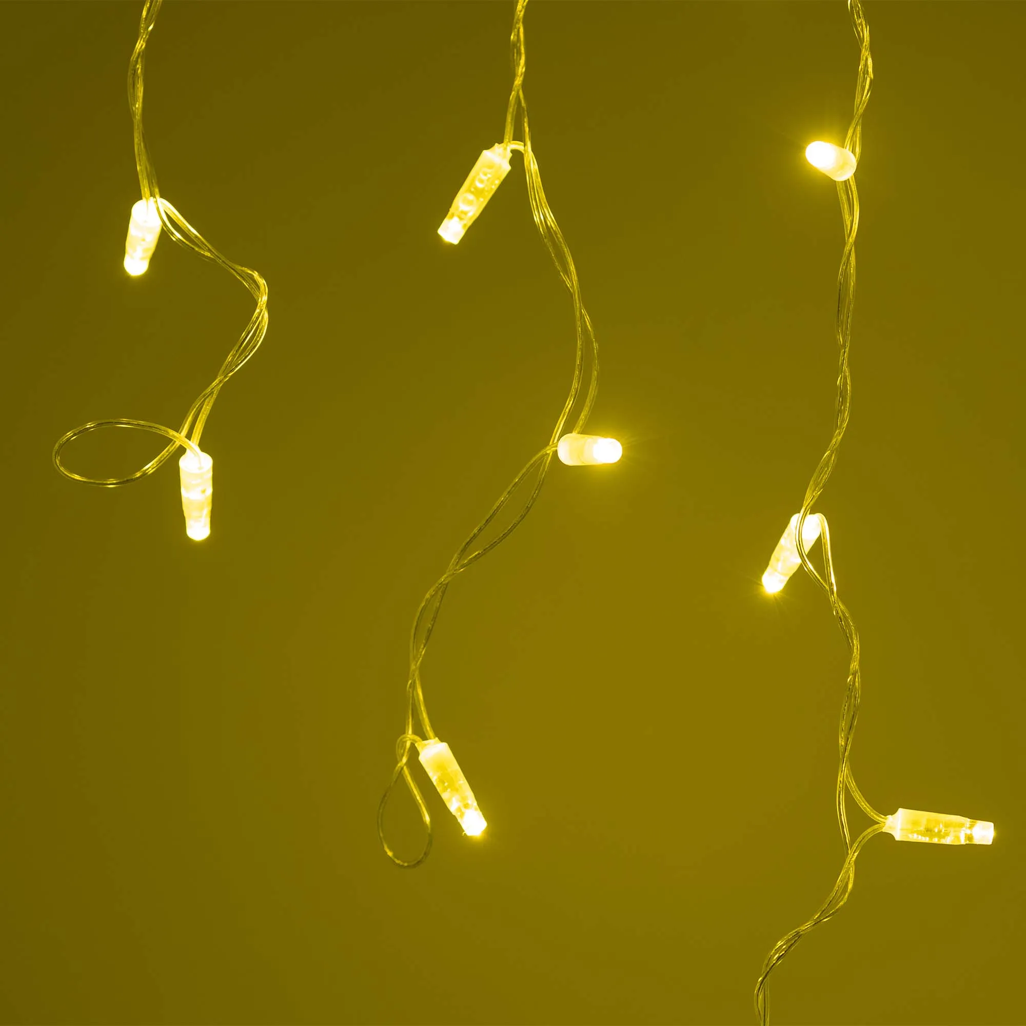 Светодиодная бахрома Classic. Размер 2400x600 мм (длина 2400 мм, по длине 24 нити высотой 200/600 мм). Количество светодиодов 88 шт размером 7 мм. Цвет свечения ЗОЛОТОЙ, эффект постоянного свечения с резким световым рисунком (прозрачная вогнутая линза). Провод прозрачный, ПВХ. Питание 230 В, Мощность 6 Вт, защита IP65, применение на улице под навесом. Аксессуары для подключения приобретаются отдельно.