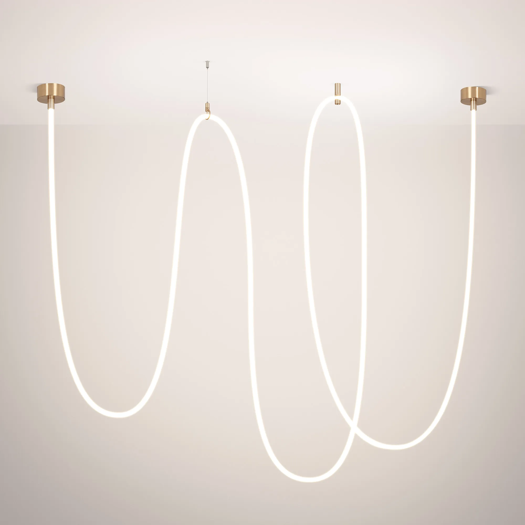 Подвесной светильник. Мощность 110 Вт, св. поток 5960 лм, 54 лм/Вт, тёплый 3000 K, CRI>90, угол 360°, напряжение питания 230 В. Золотой круглый корпус из стали, силиконовая герметичная лента, степень защиты IP20. Размер: общая высота чаши 85 мм, высота чаши без вывода под неон 50 мм, диаметр вывода под неон 35 мм, диаметр чаши 130 мм, диаметр силиконовой герметичной ленты 18 мм, длина силиконовой герметичной ленты 10000 мм. Монтаж накладной. Блок питания 24 В, 2500 мА, пульсация <5% (2 шт.). Аксессуары (подвес и крепление) приобретаются отдельно.