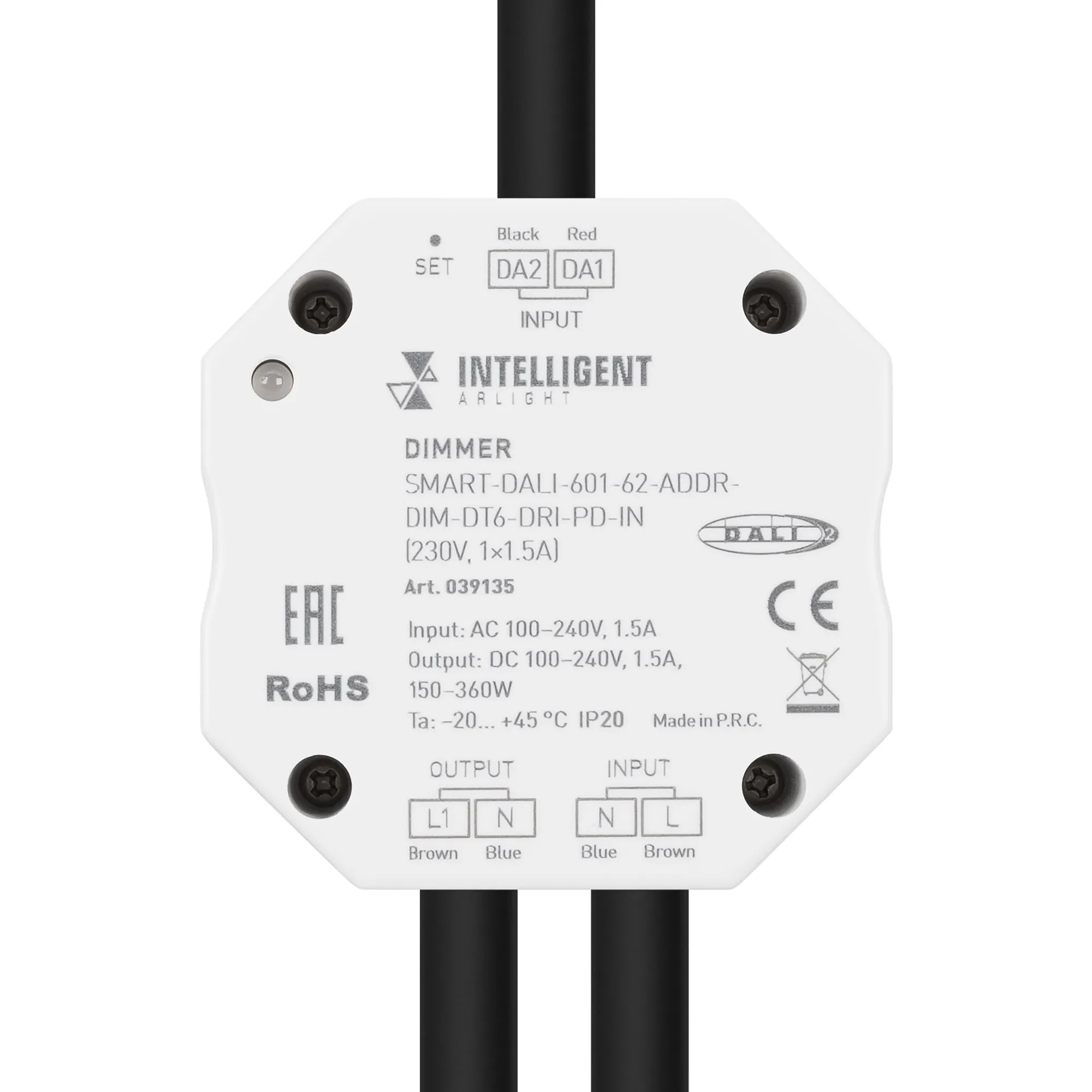 INTELLIGENT ARLIGHT Диммер SMART-DALI-601-62-ADDR-DIM-DT6-DRI-PD-IN (230V, 1x1.5A) (IARL, IP20 Пластик, 5 лет)